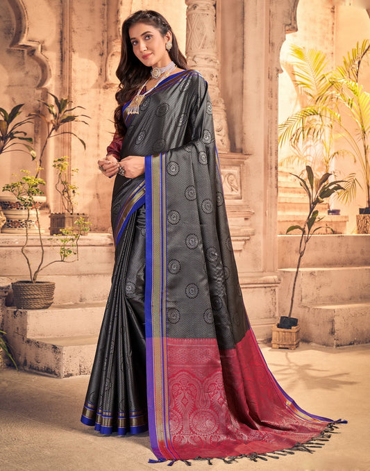 Black And Grey Coloured Poly Silk Banarasi Jacquard Saree