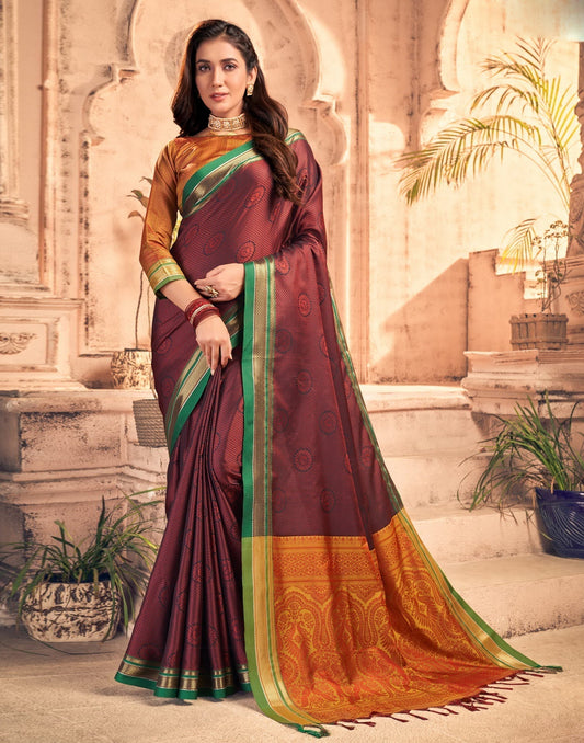 Black And Maroon Silk Saree