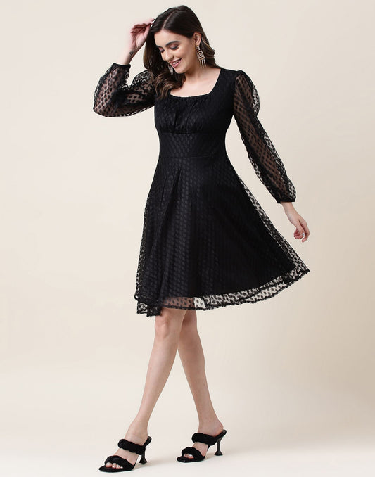 Black A-Line Plain Dress