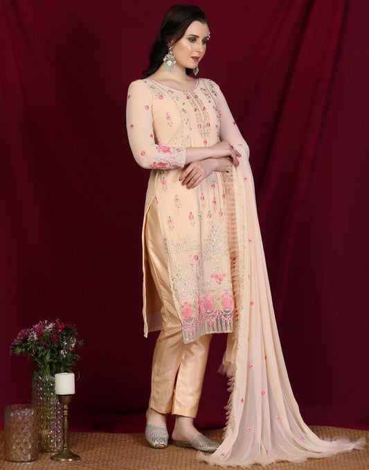 Light Peach Plain Georgette Unstitched Salwar Suit Material