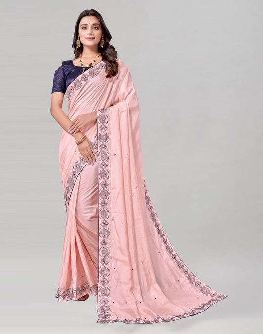 Light Pink Coloured Poly Silk Hot Fixing Saree