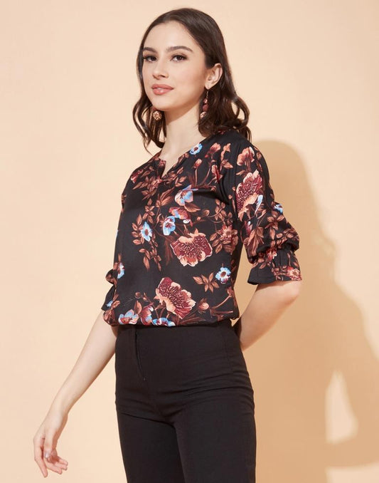 Regular price Rs. 309.00Regular priceUnit price / perRs. 0.00Sale price Rs. 309.00Black And Multicolour Floral Printed Top