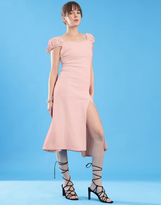 Light Pink Lycra Plain Dress