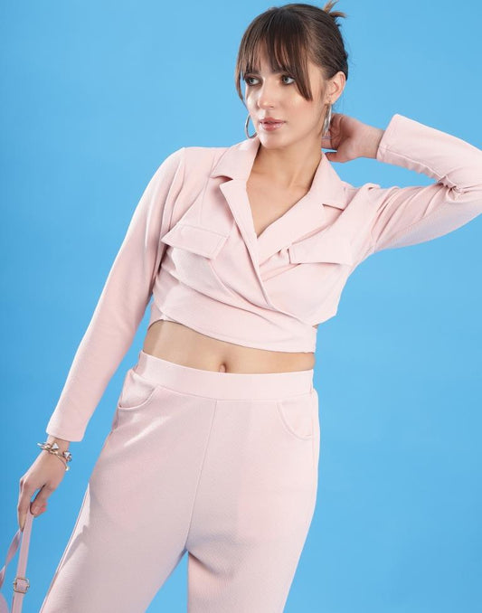 Light Pink Lycra Plain Co-ord Set
