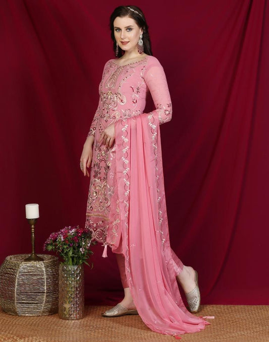 Light Pink Plain Georgette Unstitched Salwar Suit Material