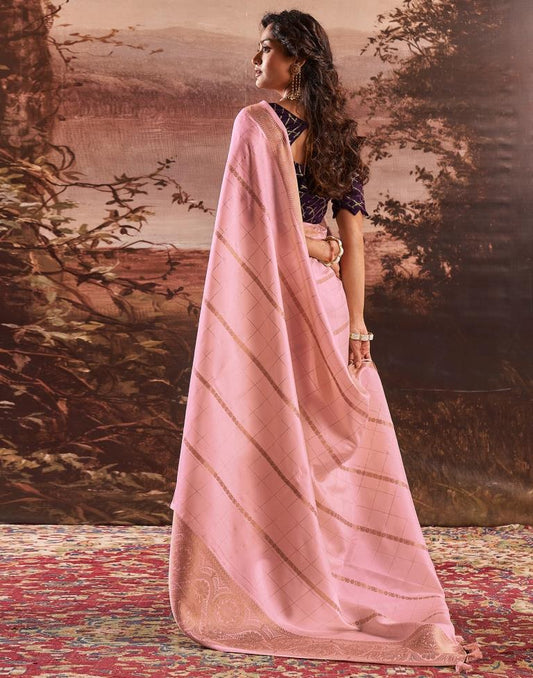 Light Pink Self Woven Silk Saree