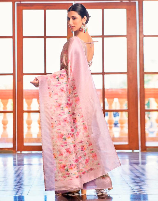 Light Pink Silk Printed Saree