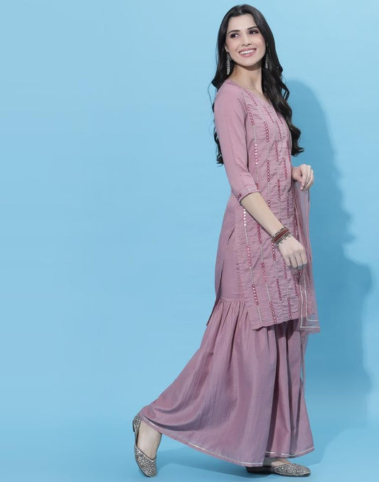 Regular price Rs. 1,099.00Regular priceUnit price / perRs. 0.00Sale price Rs. 1,099.00Light Purple Kurti With Sharara And Dupatta