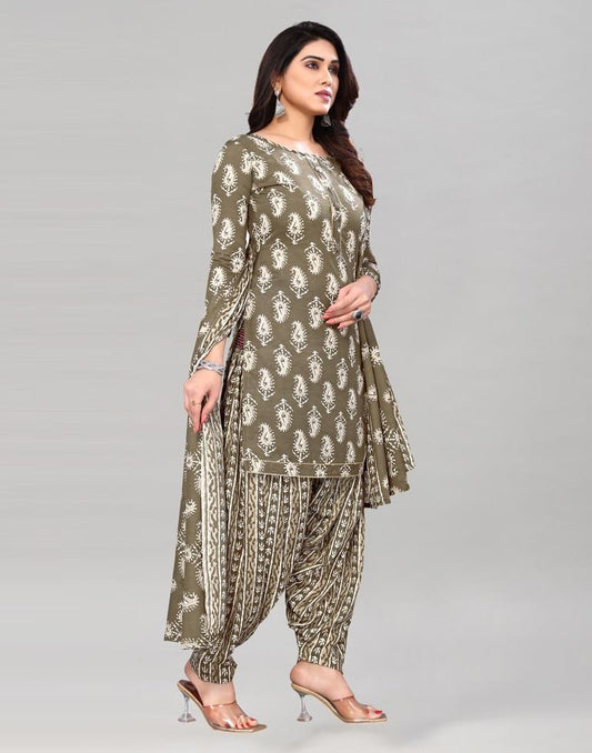 Light Stone Grey Printed Cotton Unstitched Salwar Suit Material