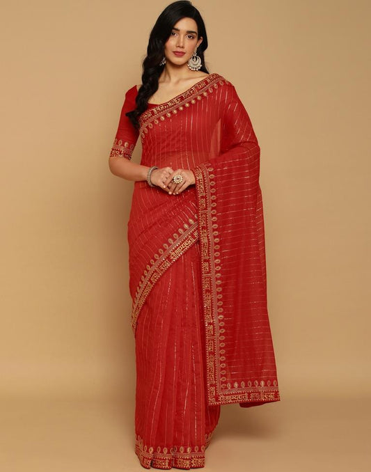 Light Sea Green Coloured Lycra Embellished Partywear saree