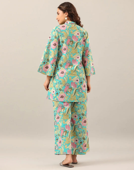 Regular price Rs. 959.00Regular priceUnit price / perRs. 0.00Sale price Rs. 959.00Light Turquoise Printed Rayon Co-ord Set