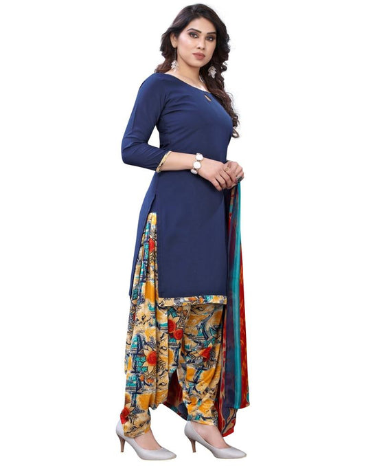 Luscious Navy Blue Printed Unstitched Salwar Suit