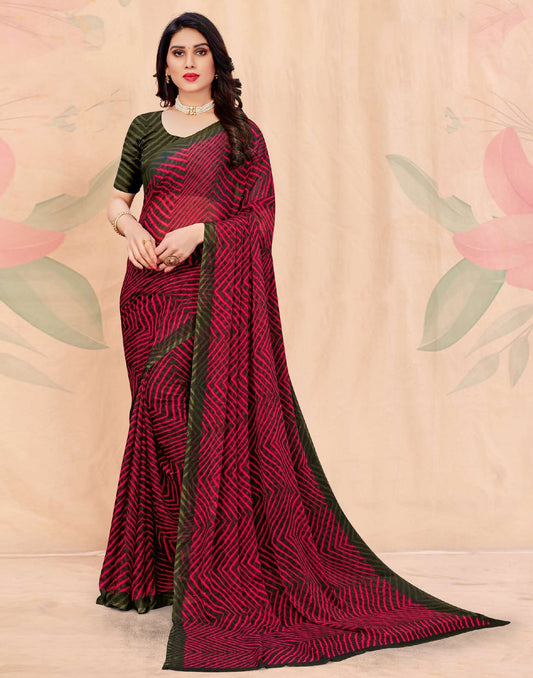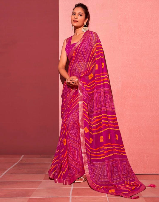 Magenta Chiffon Bandhani Printed Saree