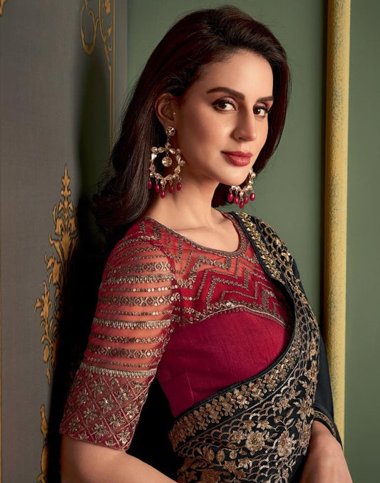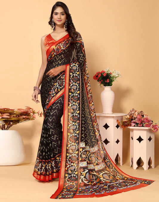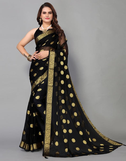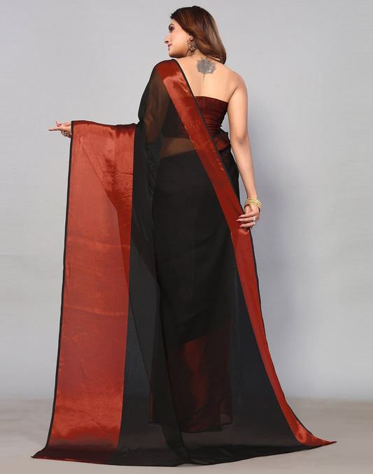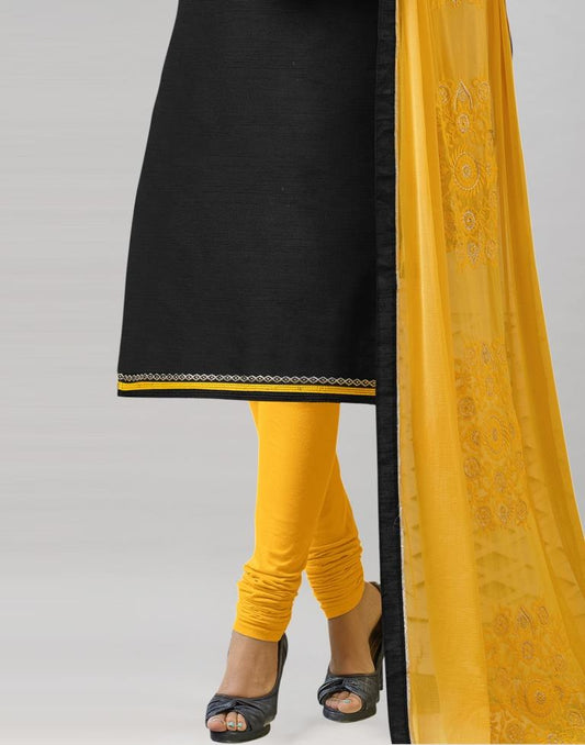 Black Chanderi Cotton Plain Unstitched Salwar Suit