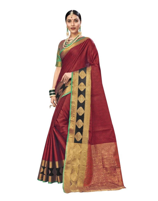 Maroon Coloured Poly Silk Jacquard Border Casual Saree
