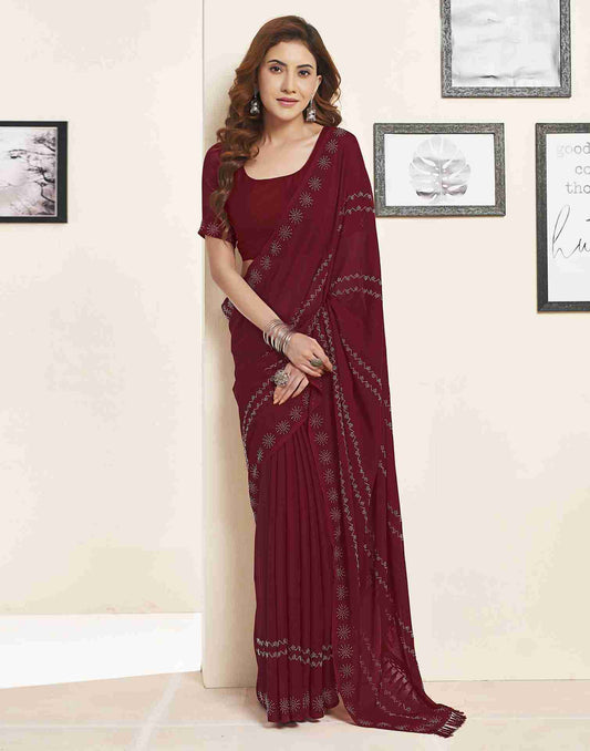 Maroon Georgette Embroidery Saree