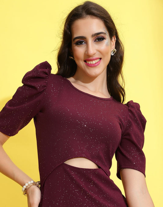 Regular price Rs. 549.00Regular priceUnit price / perRs. 0.00Sale price Rs. 549.00Maroon Glitter Cut-out Bodycon Dress