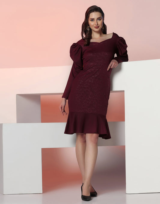 Regular price Rs. 529.00Regular priceUnit price / perRs. 0.00Sale price Rs. 529.00Maroon Lycra Knee length Bodycon