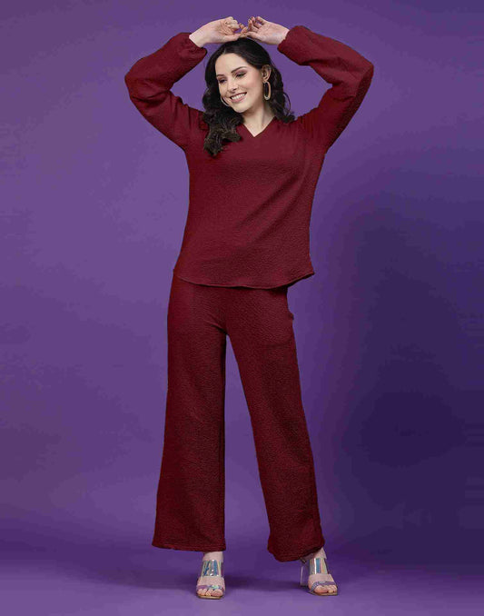 Regular price Rs. 949.00Regular priceUnit price / perRs. 0.00Sale price Rs. 949.00Maroon Lycra Knitted Co-ord Set