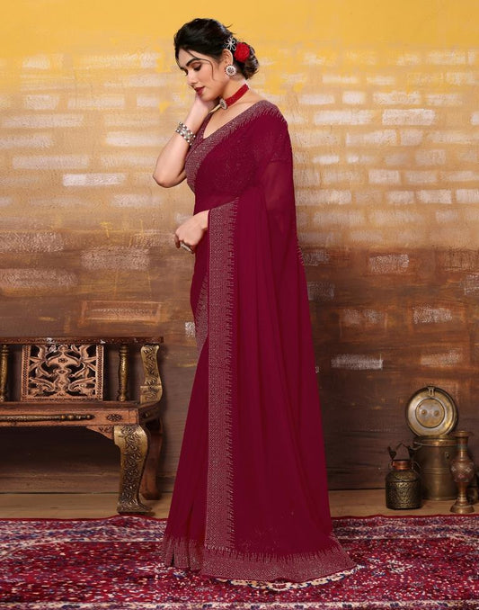 Maroon Plain Georgette Saree