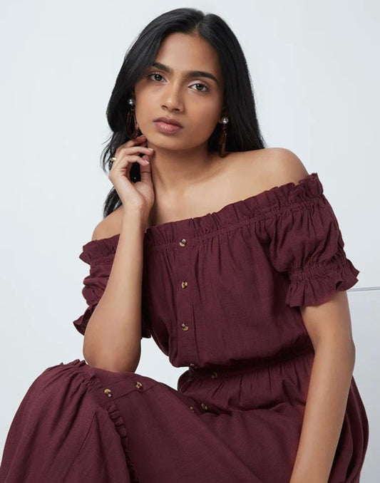 Regular price Rs. 649.00Regular priceUnit price / perRs. 0.00Sale price Rs. 649.00Maroon Plain Flared Dress