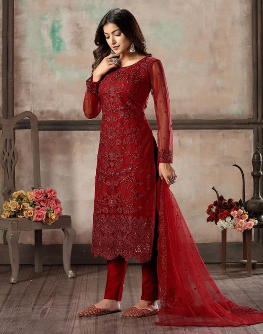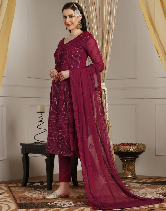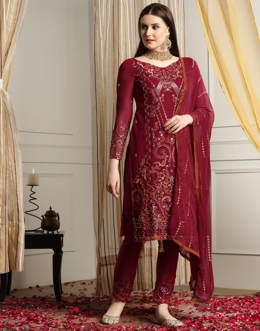 Maroon Plain Georgette Unstitched Salwar Suit Material