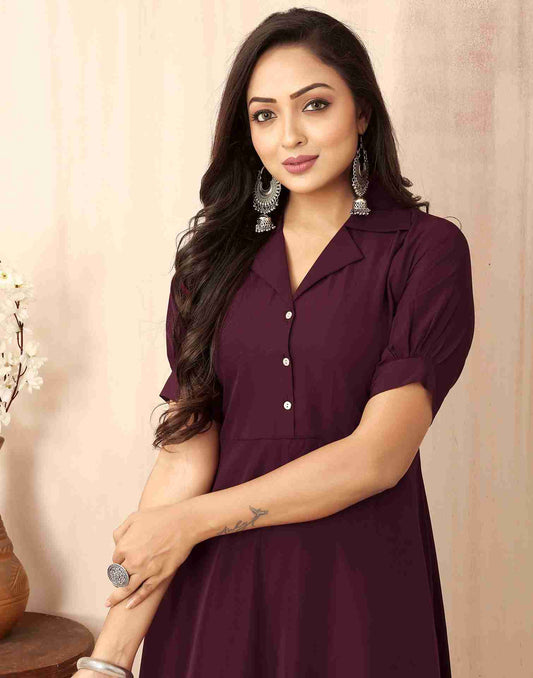 Regular price Rs. 589.00Regular priceUnit price / perRs. 0.00Sale price Rs. 589.00Maroon Polyester Plain Dress