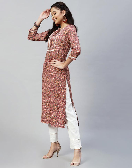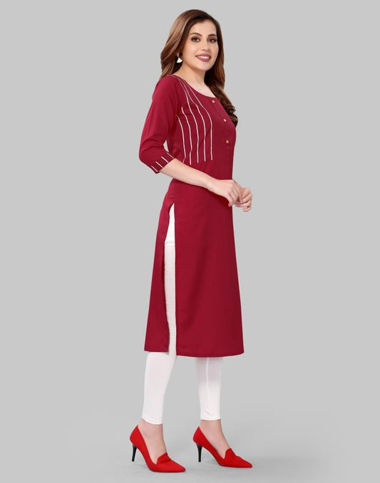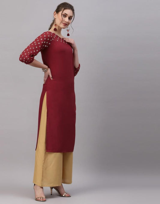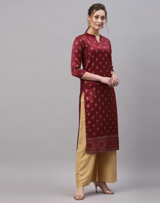 Maroon Printed Rayon Straight Kurta Set With Dupatta