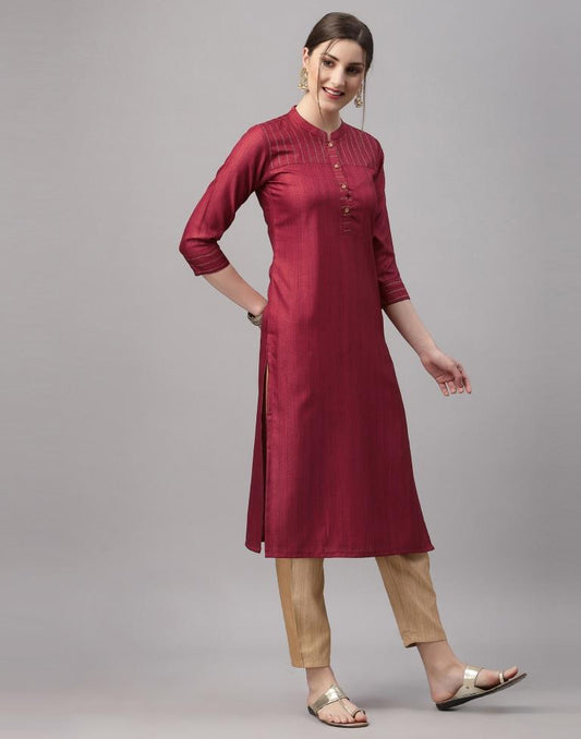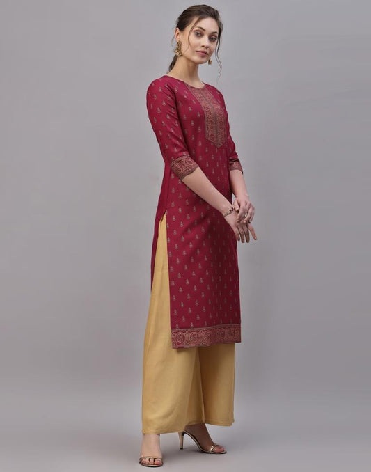 Maroon Printed Rayon Straight Kurta With Pant And Dupatta