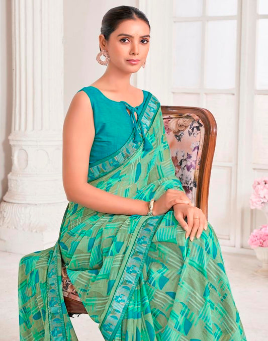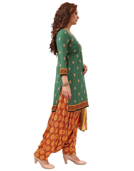 Mind Blowing Green Printed Unstitched Salwar Suit