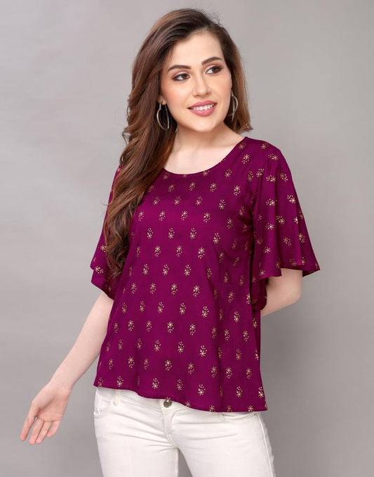 Mesmerising Purple Coloured Foil Printed Rayon Tops