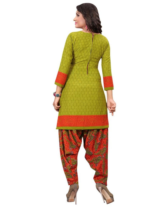 Modish Avocado Green Printed Unstitched Salwar Suit