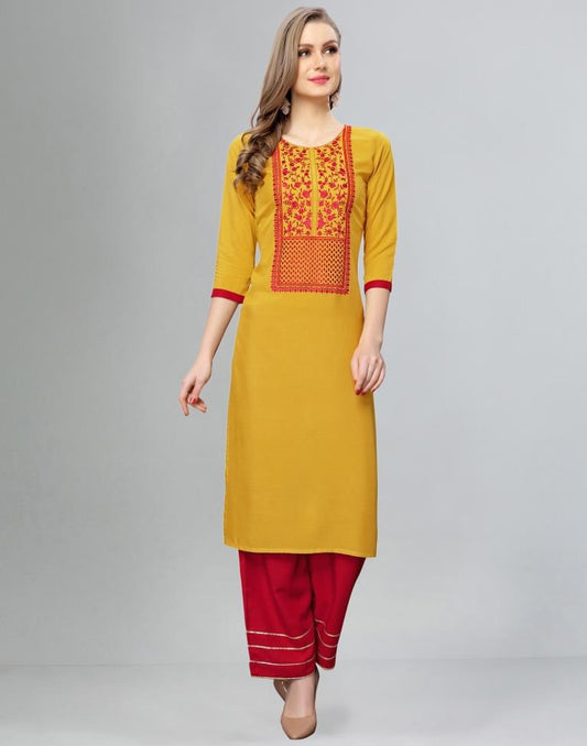 Modish Yellow Embroidered Kurti
