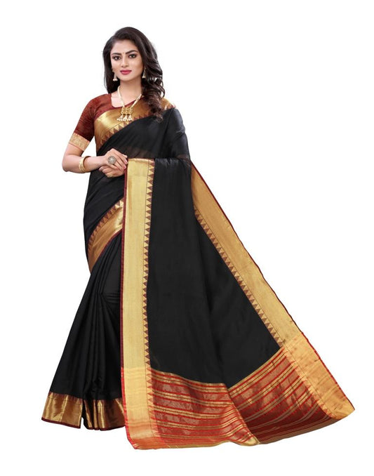 Black Coloured Cotton Silk Jacquard Partywear saree