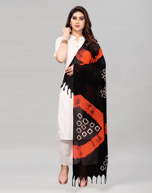 Black Coloured Cotton Plain Bandhani Printed Dupatta
