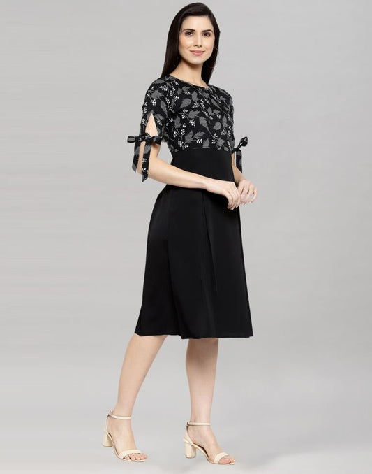 Regular price Rs. 429.00Regular priceUnit price / perRs. 0.00Sale price Rs. 429.00Black Coloured Crepe Printed Dress
