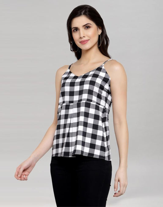 Regular price Rs. 439.00Regular priceUnit price / perRs. 0.00Sale price Rs. 439.00Black Coloured Cotton Woven Checks Casual Top