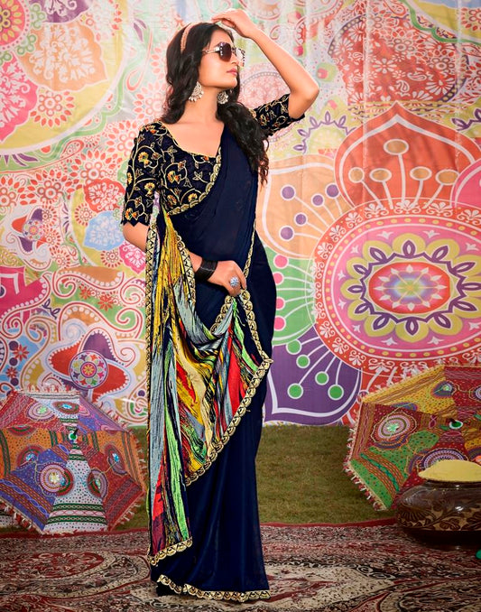 Multicolored Coloured Poly Silk Jacquard Partywear saree