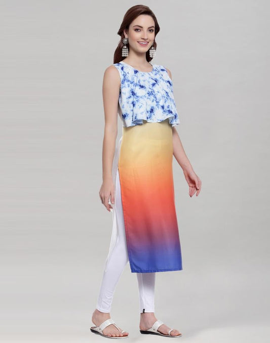 Regular price Rs. 419.00Regular priceUnit price / perRs. 0.00Sale price Rs. 419.00Multicolour Digital Printed Ombre Kurti