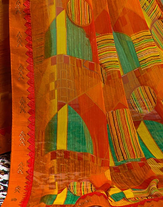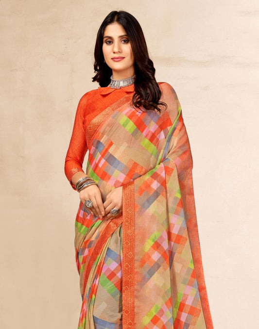 Multicoloured Chiffon Foil Printed Bandhani Saree