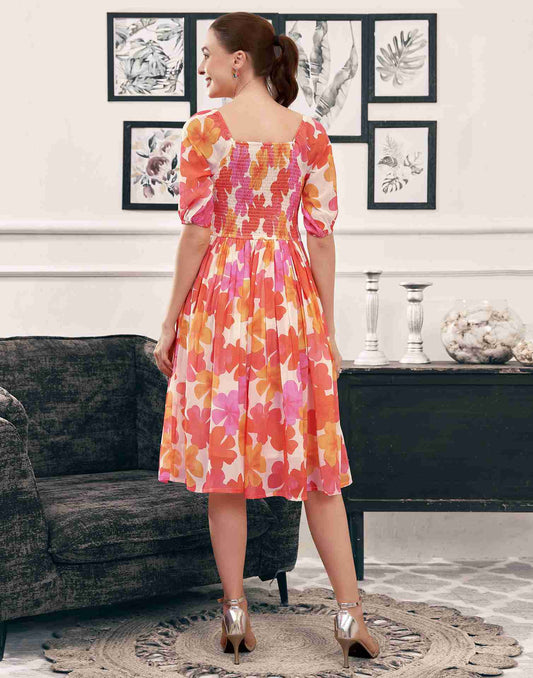 Regular price Rs. 939.00Regular priceUnit price / perRs. 0.00Sale price Rs. 939.00Multicoloured Georgette Printed Flared Dress