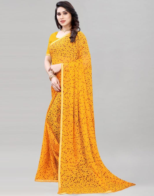 Mustard Coloured Poly Silk Jacquard Partywear saree