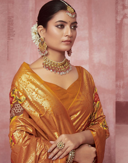 Mustard Printed Silk Saree