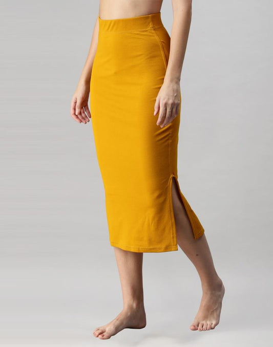 Mustard Yellow Coloured Lycra Solid Saree Shapewear