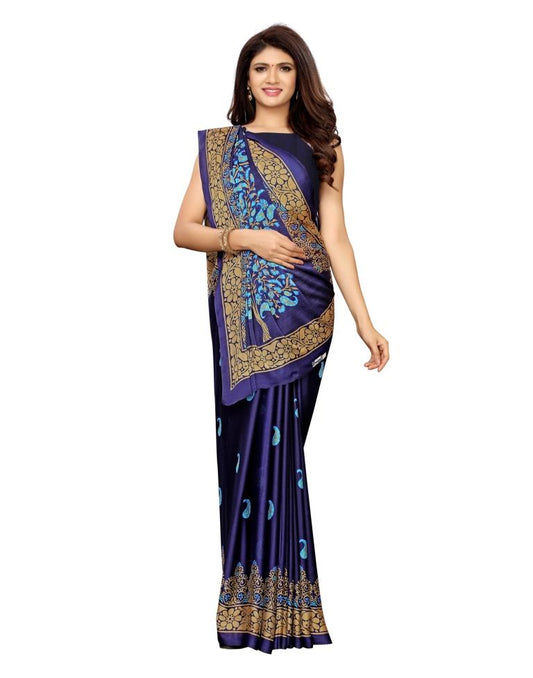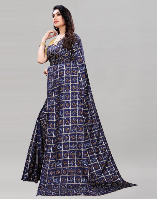 Navy Blue Coloured Dola Silk Printed Casual saree