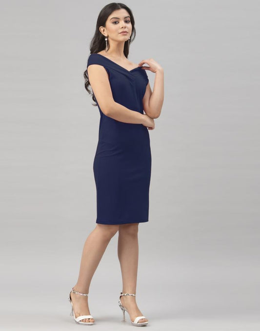 Navy Blue Coloured Lycra Knitted bodycon dress