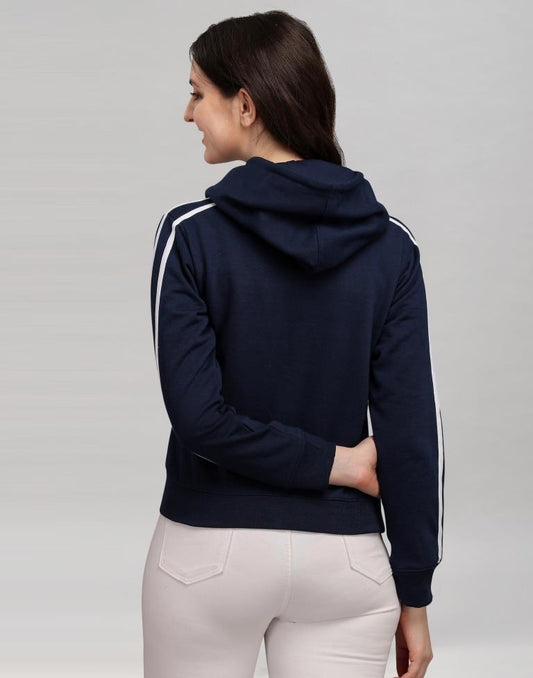 Navy Blue Coloured Cotton Fleece Blend Plain Hoodie