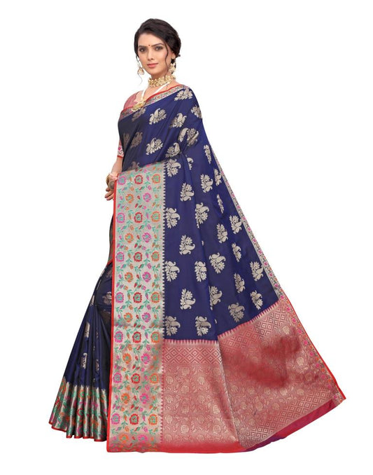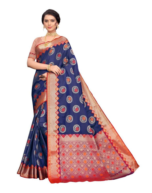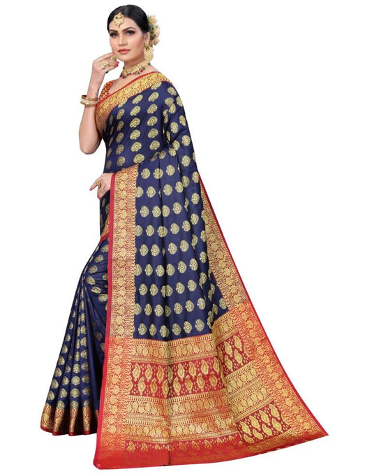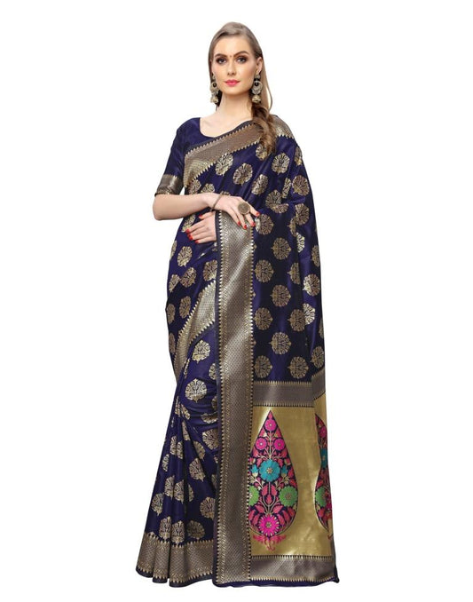 Navy Blue Coloured Poly Silk Jacquard Partywear saree