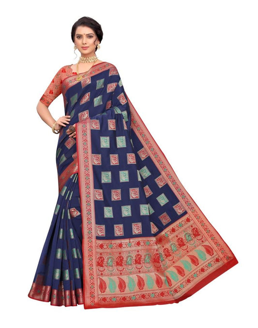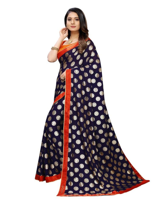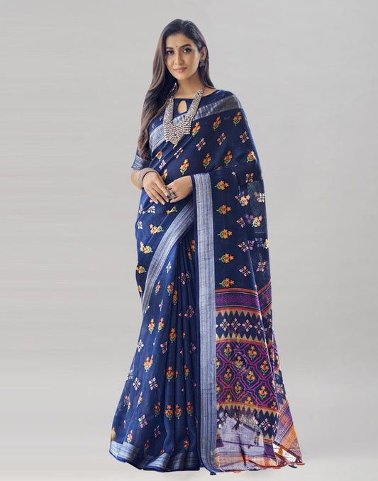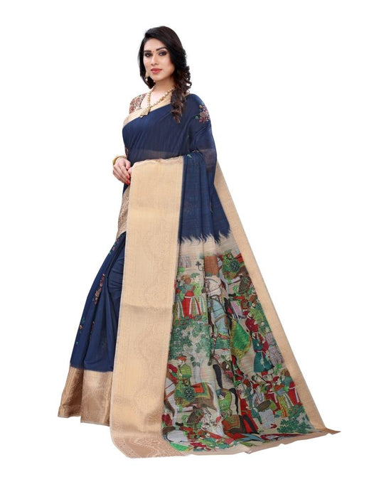 Navy Blue Coloured Poly Cotton Printed Jacquard Partywear saree