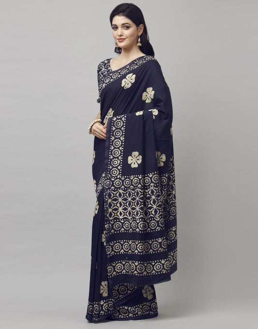 Navy Blue Coloured Poly Cotton Printed Casual saree